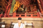 As you approach the park there are small pockets of Deer sitting under trees getting out of the midday sun, and even Deer munching out on the offerings of the gardened medium strip in the middle of the road. Along with the deer, are the ‘Deer Ladies’, and Dear Ladies they sure are. Selling the weary tourist a cold drink, disposable camera, postcards, and Deer food, which look a lot like packs of (my favorite) Dutch Stroopwafles (syrup waffles) except after massive amounts of time in a dehydrator…and they go OFF…as soon as you’ve purchased, and am attempting to step over the small fenced park, they’re onto you. You’ve never seen me move so fast in rapid circles as a trail of hungry Deer hot hoofing it on my tail, even getting my tail head butted once or twice by an angry Deer wanting some of what id got. Rapidly dispersing said Deer fodder, and moving on further into the park, we get to the famous building, and breathtaking Buddha -Om Tat Sat.